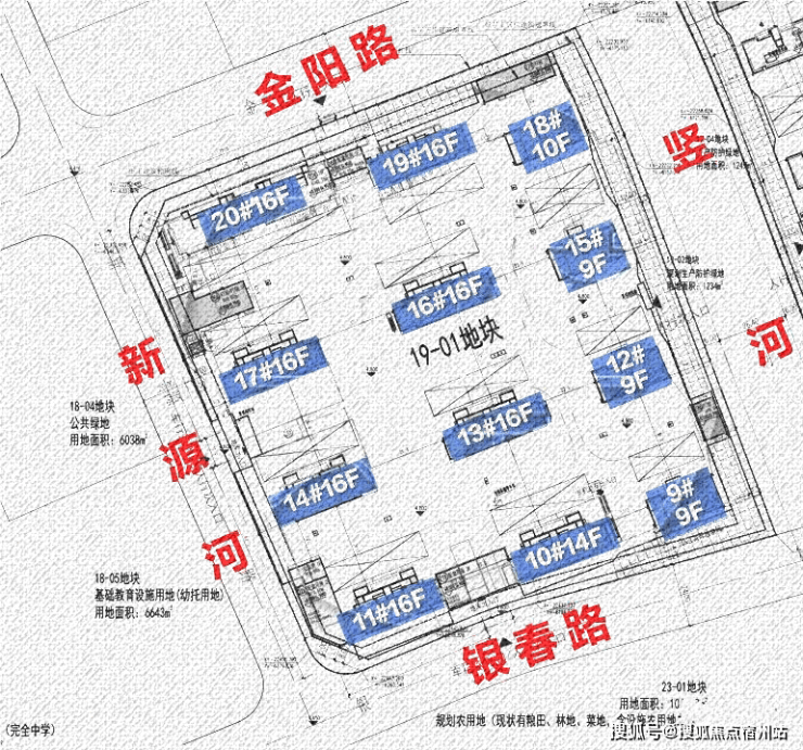 19-05地块规划:拟建7栋16F高层住宅、3栋9F高层住宅、1栋14F高层住宅、1栋10F高层住宅以及若干配套用房,规划住宅套数下限656套。