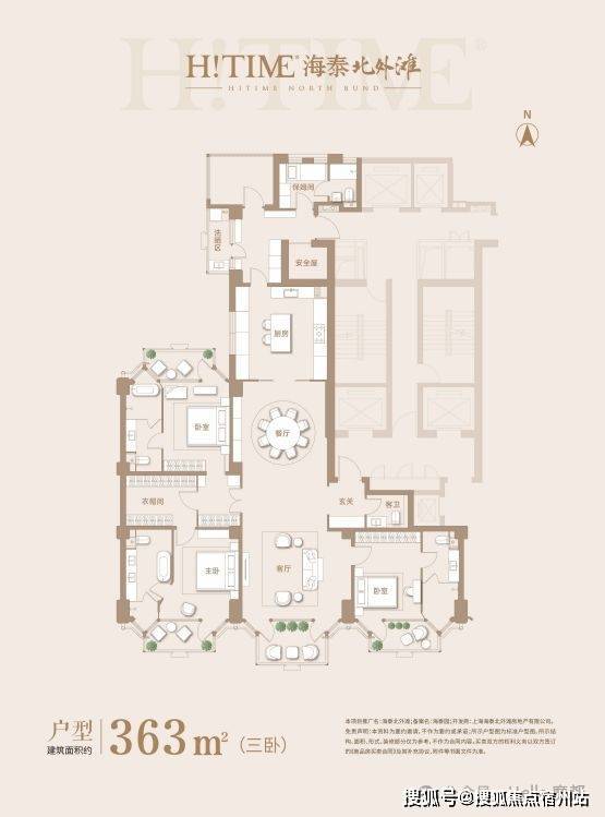 项目南侧一栋住宅户型呈金字塔造型,四间套房,超大客餐厅,充分利用南向面宽,360°采光不浪费一丝一毫江景。每个房间都有超大阳台,阳台外设置阔绰花池。南侧塔楼顶部设计了一座停机坪,这是上海首个也是目前唯一设计顶楼停机坪的住宅。北外滩将按照“最高标准、最好水平”的总体要求,打造以“世界级会客厅”和“具有全球影响力的世界级滨水区”。
