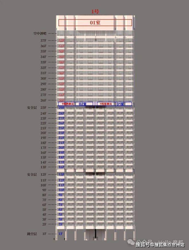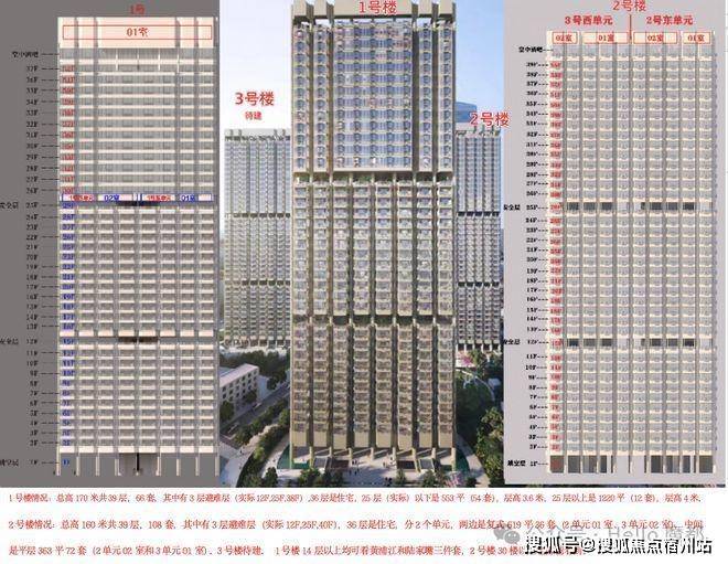 1号楼情况:总高170米实际共37层,56套,实际36层是住宅,25层(实际)以下是553平(44套),层高3.6米,25层以上是1220平(12套),层高4米。8月底即将取证。1号楼12层以上景观就很好了。