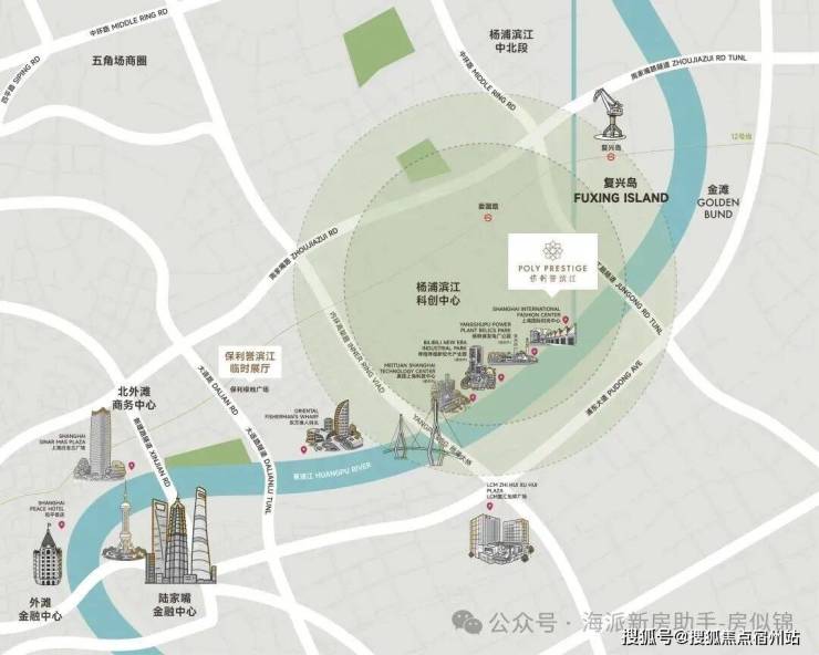 项目位于杨浦滨江“一岛两翼“黄金支点,向左是滨江南段产业核心,向右是复兴岛未来科创。