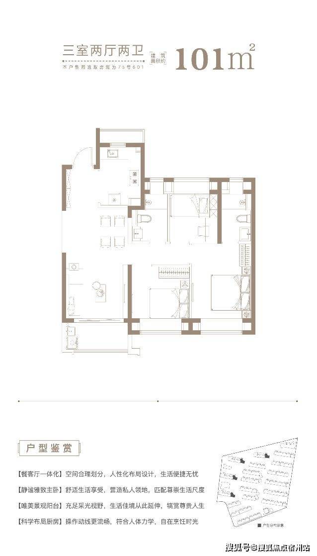 户型解析:三开间朝南+主卧套房设计+动静分离+全卧室带飘窗,采光优秀;厨房预留大尺度冰箱位;双卫设计,没有了“早高峰”的烦恼;主卧套房,尊享私密和奢阔尺度。舒适度和尺度感兼具,非常匹配精英家庭的生活追求!