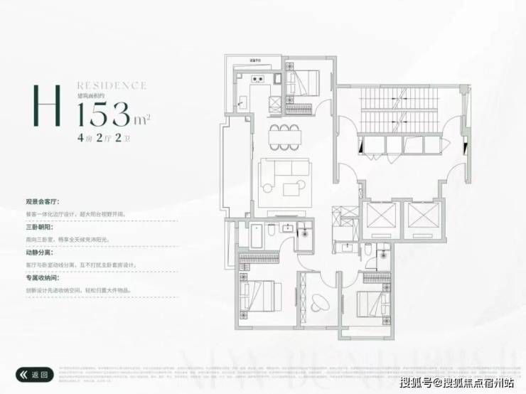 2#总高12F-13F,首层部分为社区配套+沿街商业+架空层,户型为建面约189-199㎡4房2厅3卫,两梯两户,层高约3.15米;