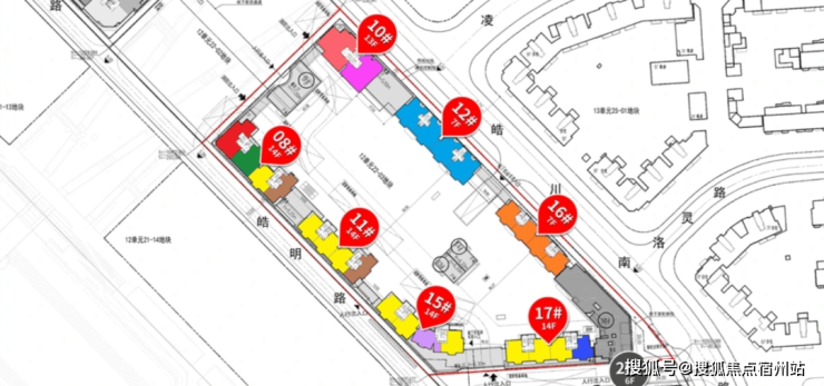 11#、15#、17#总高14F,户型为建面约99㎡3房2厅2卫,仅17#东边户为建面约86ni3房2厅1卫,一梯两户,层高3.05米;