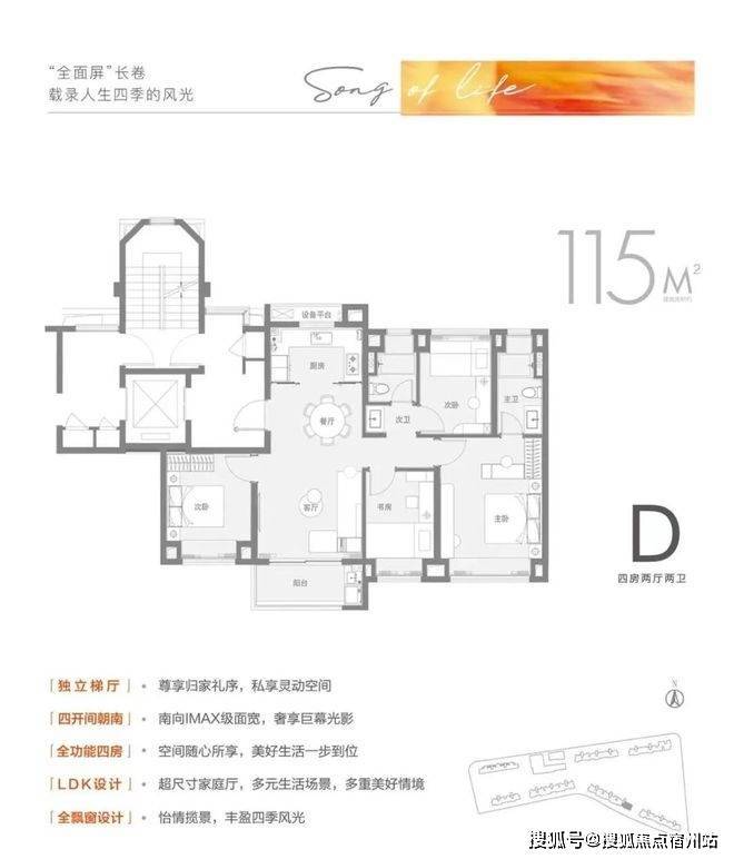 建面约115㎡4房2卫户型做到了同面积段罕见的四开间朝南+四房设计,✅✅保利虹桥和颂售楼处电话:400 - 882 - 4258✅✅南向IMAX级景观面,卧室阳光满溢,功能性也拉满。