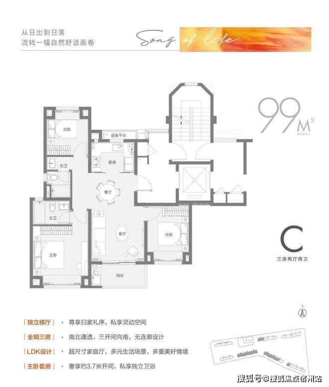 建面约99㎡3房2卫户型不仅保留三开间朝南和餐客厅一体化的优势,✅✅保利虹桥和颂售楼处电话:400 - 882 - 4258✅✅更在尺度上大踏步进阶。