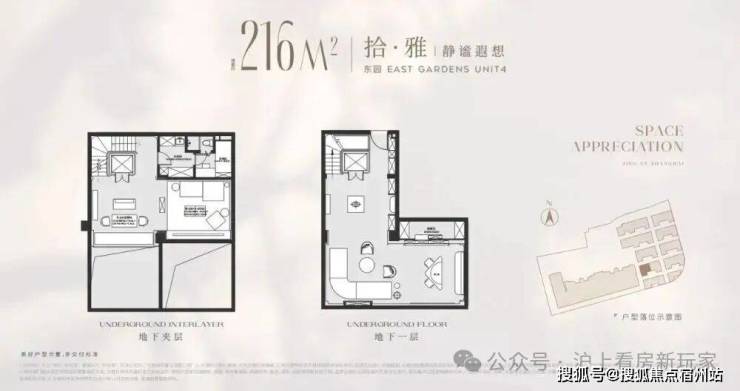 以建面 216平户型为例,地面总高3层,地下一层5.5米带夹层,地下室面积就达到120m²,另外有露台、花园等,项目平均附赠也达到了约60%!