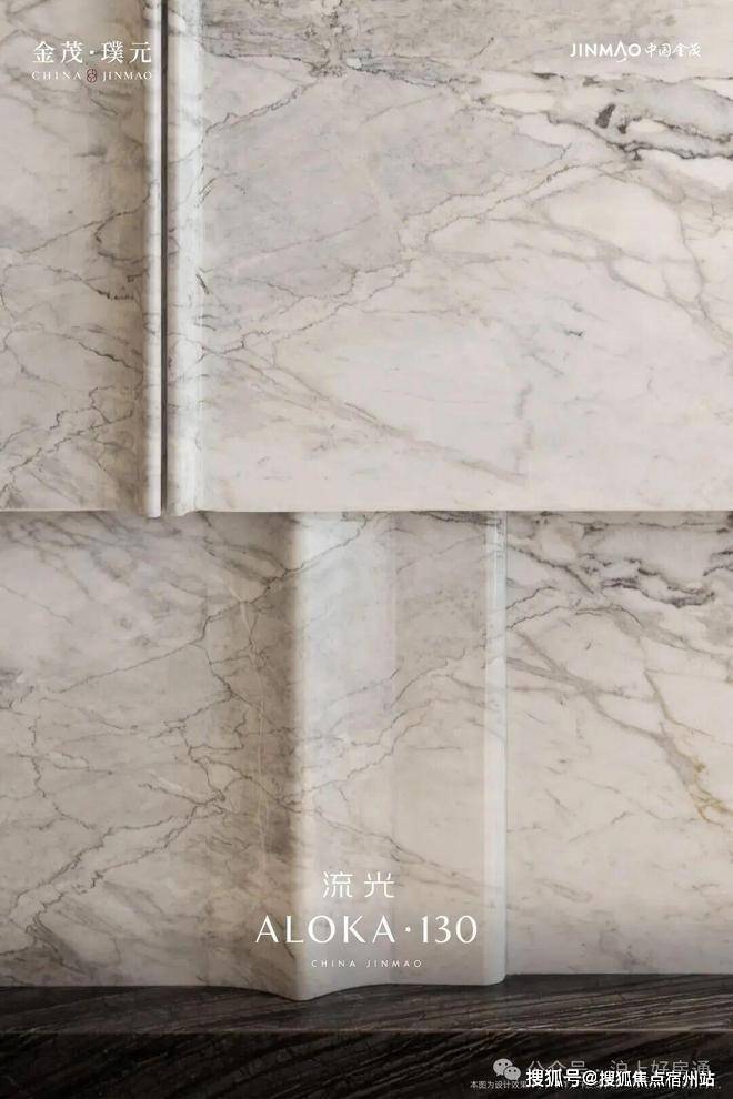 江南烟雨奢石的背板,山水纹路若隐若现,✅✅金茂璞元售楼处电话:400 - 8824 - 258✅✅搭配温润的尼斯木柜门、香奈儿灰的地面,高级感油然而生