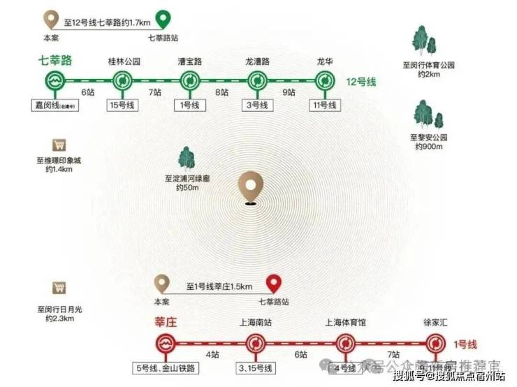 商业方面,离项目最近的商业是12号线七莘路站地铁上盖综合体 维璟印象城,直线距离仅相距约 1.4公里
