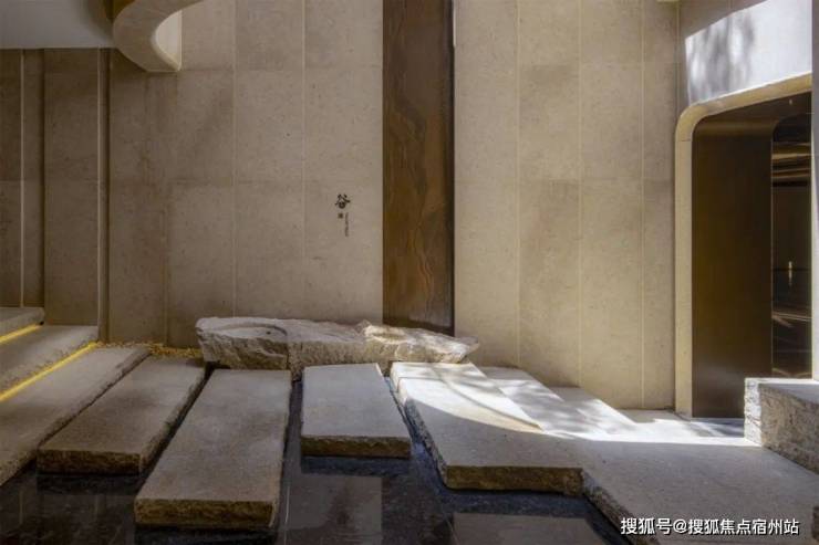 造型别致的罗马浴场风格和我国宋代名画《溪山行旅图》在这里完美碰撞,再加上项目很巧思的在泳池上方做了天窗,引进了自然光线,呈现出非常独特的美感。