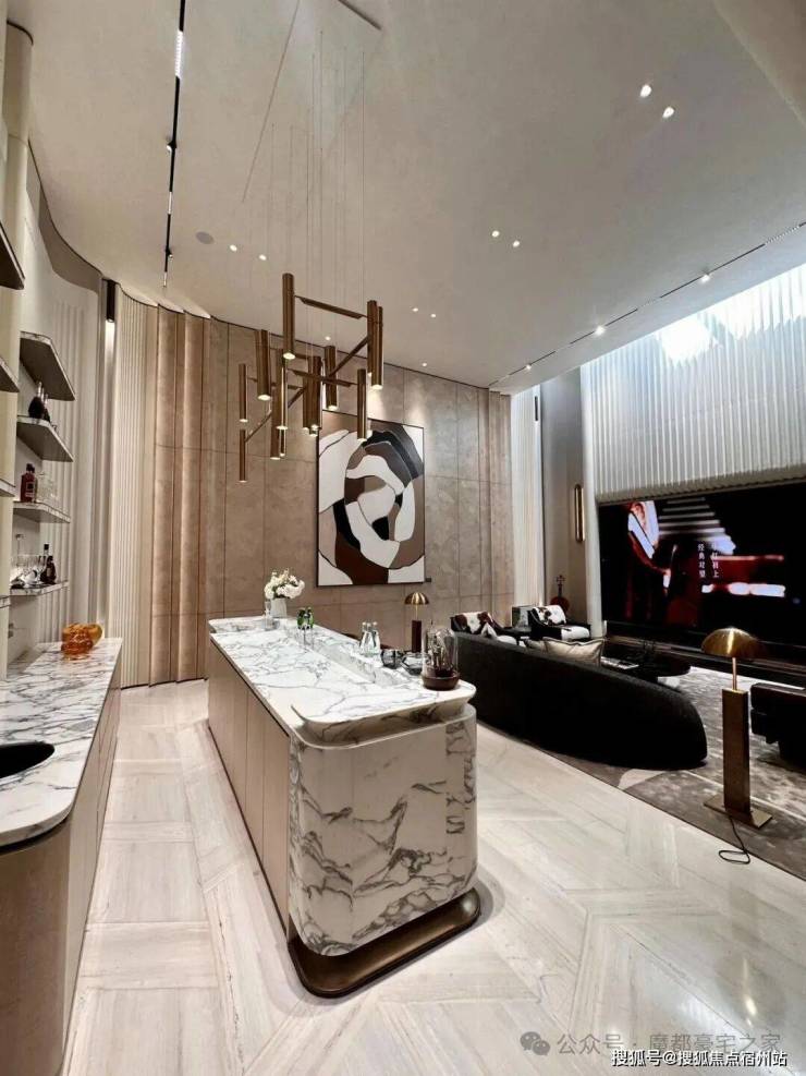 步入约260㎡样板间,奢华大气的空间叙事即刻令人惊艳。设计师采用大开间布局配合高窗墙比设计,在客餐厅区域创造出“思想共振场”——这里不仅是社交空间,更是光影与思想共舞的容器。