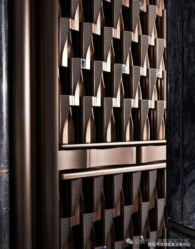 金属大门采用古琦黑石材,以珠宝级工艺淬炼出深邃肌理,每一道纹路都在诉说着匠人的执着。