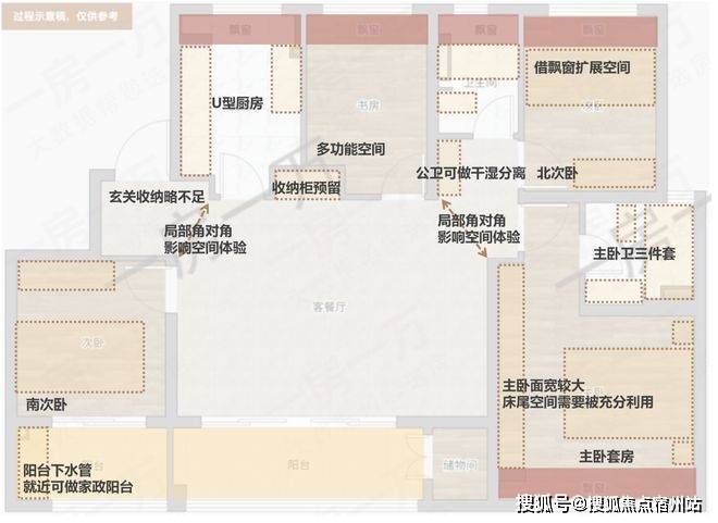 此外,进门玄关,以及客厅东北角均有“角对角”的墙体格局出现,一方面使用感受略有影响,另一方面可能卡住大件家具进出,✅✅安高海印华庭售楼处电话:400 - 882 - 4258✅✅同样建议实际体验来做决定。
