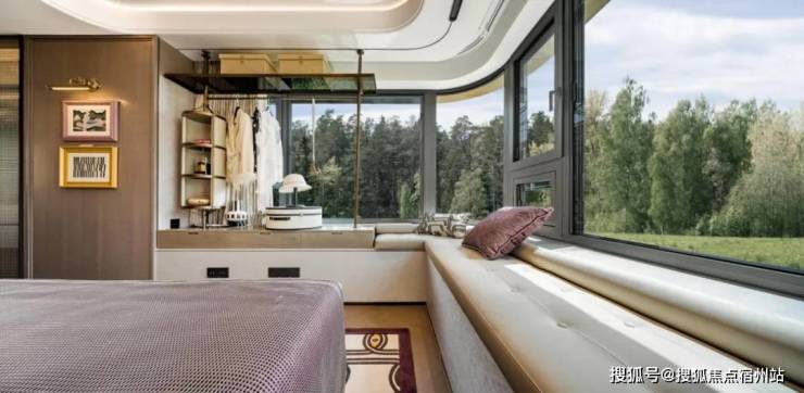 主卧飘窗 无立柱遮挡视野,尤其是靠近衣柜的部分可作为 创新次净衣柜, 平时回家脱掉的外套可以挂在这里。