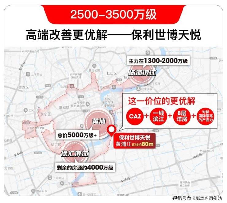 你要知道,徐滨剩余的房源约4000万级,黄浦5000万级+,杨浦滨江主力在1300-2000万,当下核心地段,2500万到3500万级能选的只有保利世博天悦。