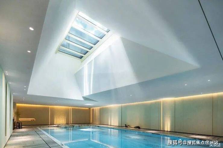 造型别致的罗马浴场风格和我国宋代名画《溪山行旅图》在这里完美碰撞,再加上项目很巧思的在泳池上方做了天窗,引进了自然光线,呈现出非常独特的美感。