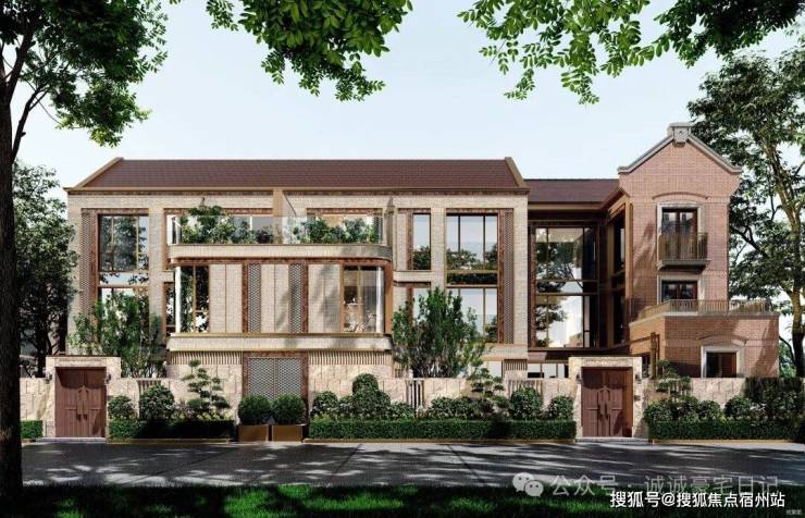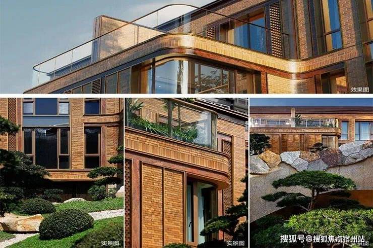 例如,在社区入户,目前已经完美呈现出来的,有强烈视觉冲击的立面 大量的红砖、红洞石及大面积的落地弧形玻璃搭配的相得益彰,整个门头既有厚重的历史感,又不失极简主义的现代美。