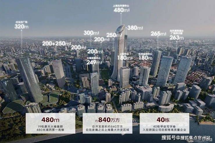 根据规划细则,这里将建设约480米高的上海北外滩中心,未来将与其他17栋180米以上的超高层建筑群,共同构筑起浦西最美天际线,业态更为丰富,产业结构也更为稳健。