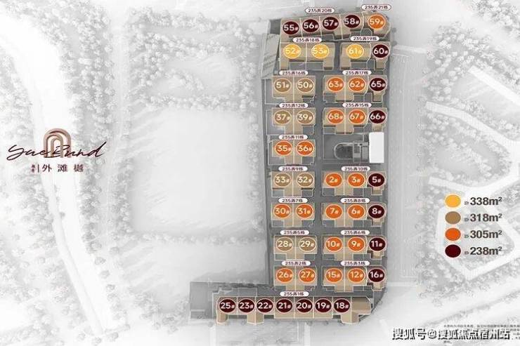 仅48套低密风貌别墅(双拼/三拼),地上3层、地下2层,层高3.2-3.9米、地下挑空6.15米,户户带30-80平私家庭院、观景露台。建面约238平、305平、318平、338平米,售价19.5万/平,总价4800-9000万