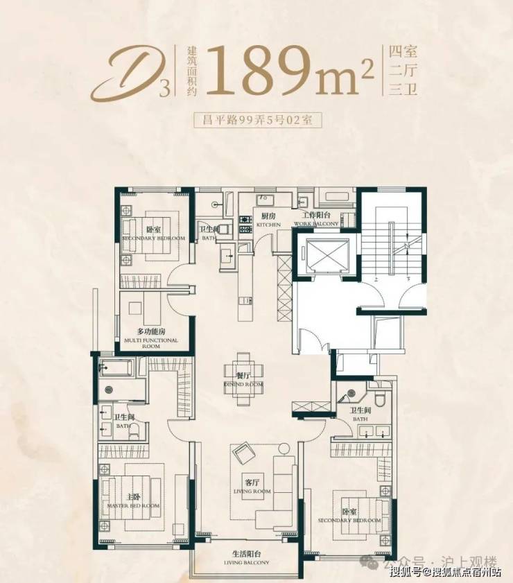 建面约176㎡4房2厅2卫户型: