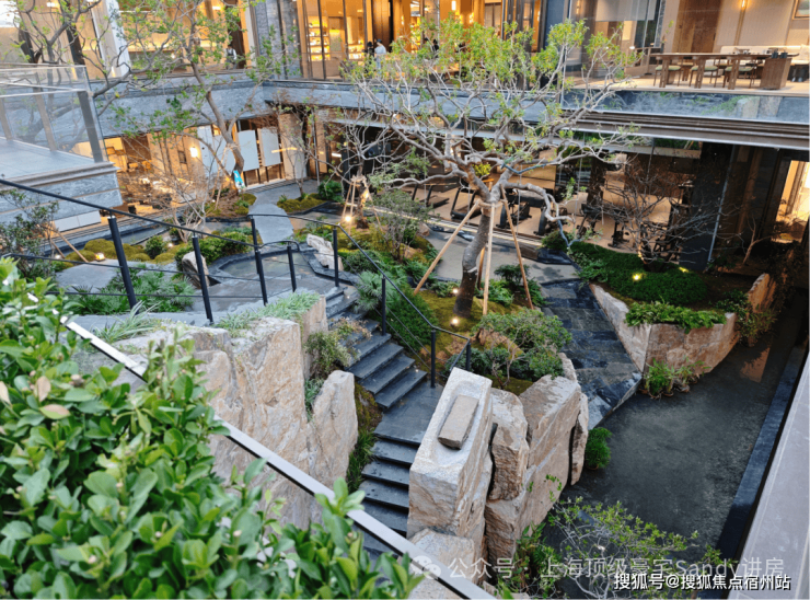 通过下沉会所庭院,将传统平面绿化转化为垂直的多层次园林空间,打造出了当代立体山体水景观,身处其中在步履起承转合间,串联起一幕幕诗画风景。