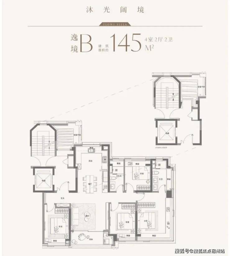 1、建面约145平户型热销且紧缺四房产品,类一梯一户设计,边套转角窗搭配超高窗墙比,采光通透,兼具功能与尺度的双重要求;