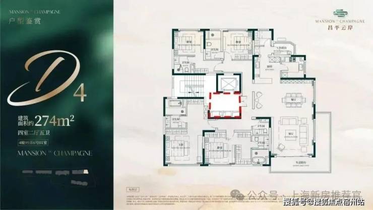 建面约274㎡4房2厅5卫户型▼