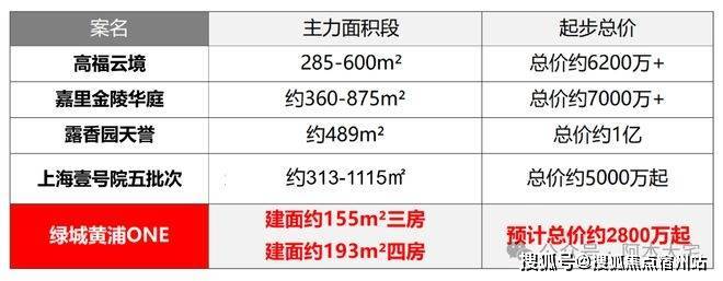 总价普遍在5000万-1亿,绿城黄浦ONE3000万级四房独苗