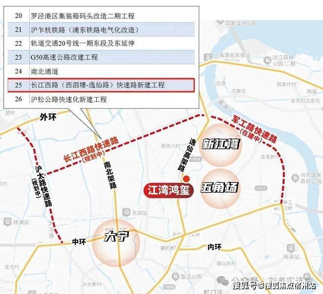 【江湾鸿玺】售楼处预约咨询热线:400-882-4198军工路快速路新建工程预计今年年内完工,意味中环北抬今年将迈出重要一步,而长江西路快速路已被列入2025年上海市重大工程清单,预计即将开工。