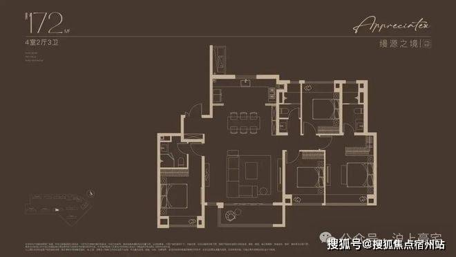 建面约172㎡4房户型,多娃家庭的进阶之选!奢阔尺度尽显家族气度!2梯2户, 子母双开门礼序入户,私密尊崇门厅;约16米四开间朝南 ,搭配约6米尺度横厅 ,揽四时风景入怀。