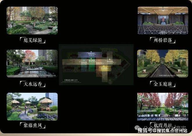 项目园林对轴线的运用同样出彩,堪称神来之笔的“双轴六境”,由 “礼序归家轴+景观漫步轴”纵横交织,融在地文化,以“非遗”竹编形制,铺陈园林步道,同步淬取 “州桥壁落”、“紫藤熏风”、“天水远香”等嘉定古今6景,提炼细节元素及专属色系,营造主题园林空间。