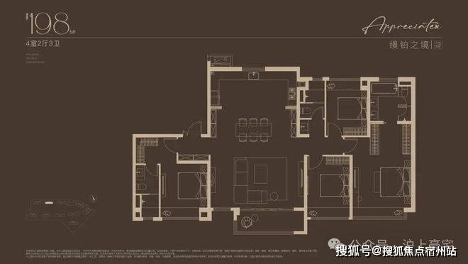建面约198㎡4房户型,嘉定“收藏级”传世大宅!塔尖人士的挚爱之选!2梯2户的设计,子母双开门礼序入户,私密尊崇门厅,彰显尊崇生活仪式感。