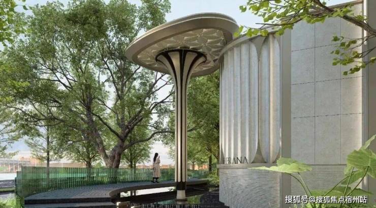 以雅艺柔美的对称主义构筑社区入口大门,从森林中获取灵感,宏观提取叶脉形态,呈现犹如自然中的脉络与流动;同时深入微观的细胞视角,复刻植物的几何纹理与结构逻辑,以自然的秩序与美学塑造“花瓣状的母题造型”。