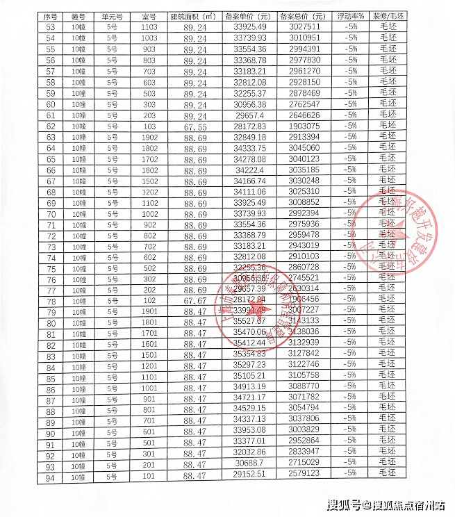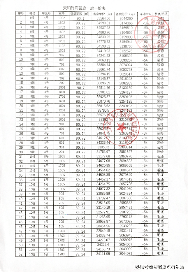 向上滑动阅览一房一价表