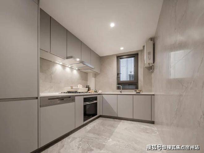 美诺的厨电5件套,包括油烟机、三眼燃气灶、洗碗机、烤箱、冰箱。厨房水槽和龙头甄选铂浪高。