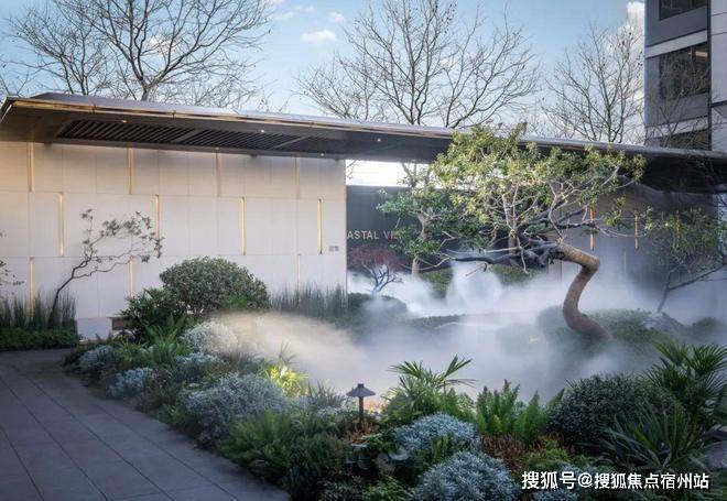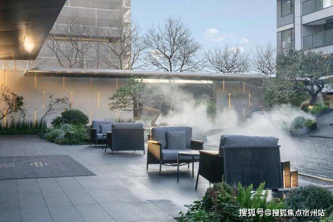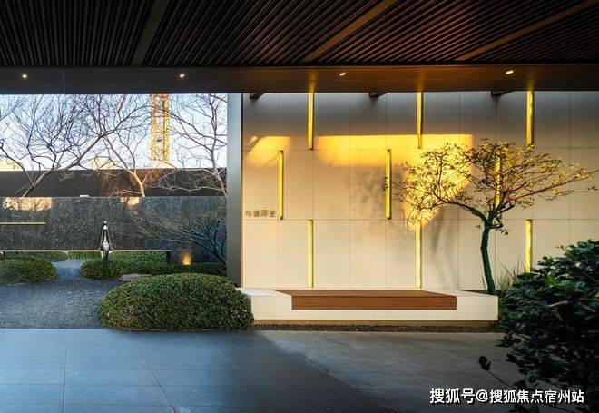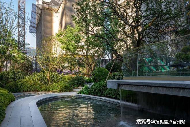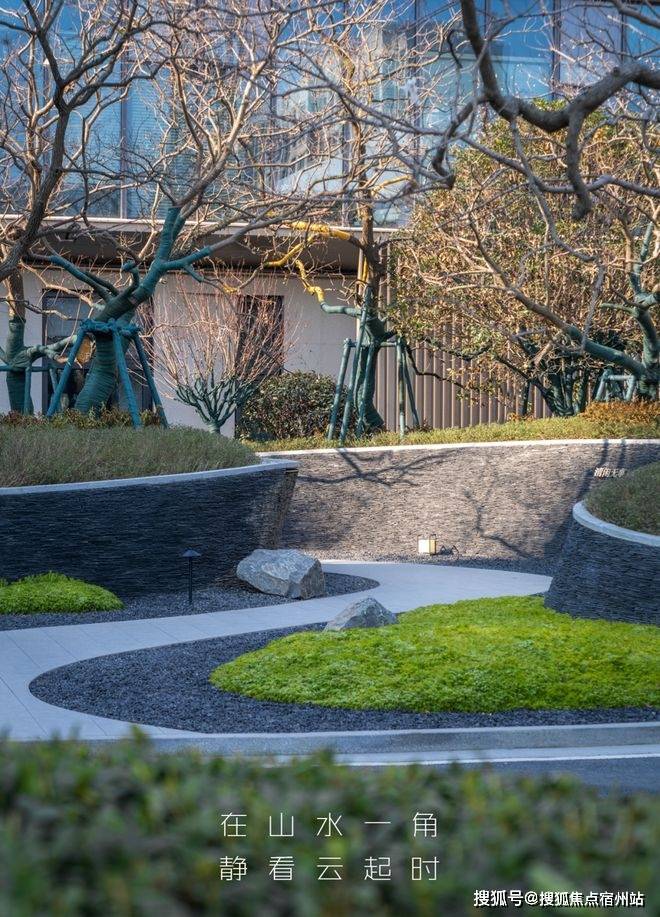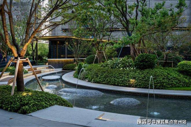 30米宽的归家水景,完美演绎出自然生态的水景魅力,中国黑波浪纹流水板,营造出沉稳且大气的视觉体验。特选造型铁冬青作为点景树,与中国黑自然面置石、灵动细致的流水融为一体,共同构筑了一个宜人且充满绿意的庭院空间,仿佛置身于自然的怀抱,入则宁静,出则繁华。
