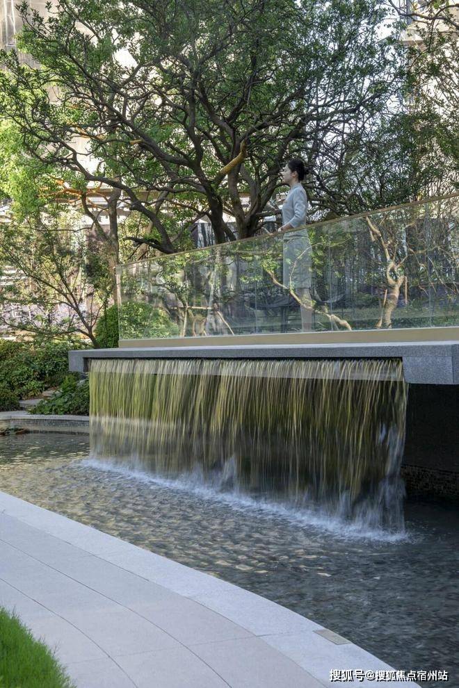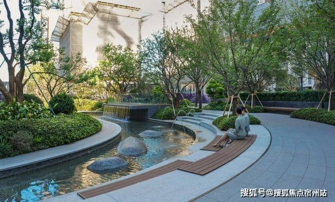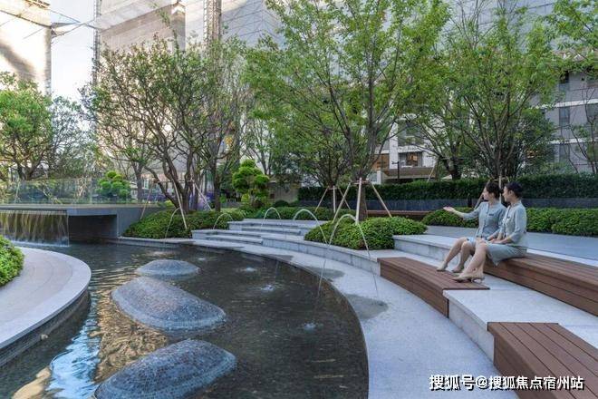 中央景观区精心打造了一处环绕阳光草坪、长约28米的水景,池底铺装防滑石材,同时,配备专业净水设备 ,全天候循环保障水质安全。紧邻戏水池,还贴心设置了林下看护坐阶,贴着戏水池设置林下看护坐阶,为邻里间提供了交流互动的惬意空间。