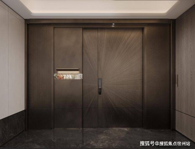 比如入户大门配备大面积的金属格栅、局部莫奈奢石