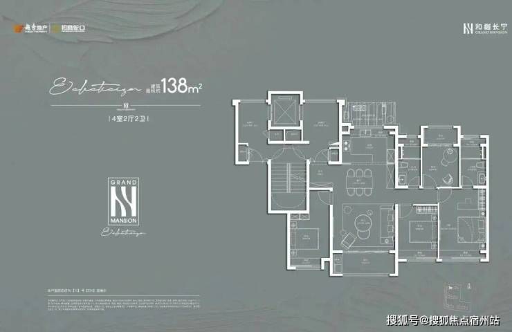 建面约138㎡4房2厅2卫: