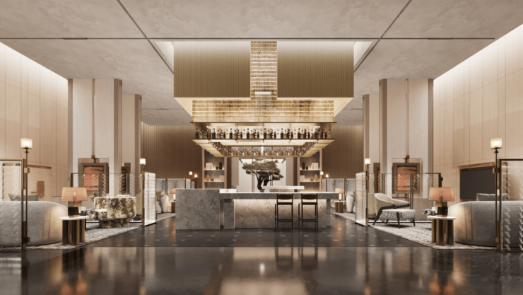 ·立面之美:瘦金披檐、雕花格窗等宋式形制,融合金属铝板、铜金栏杆与进口石材,呈现“雅映金石”的当代风骨。