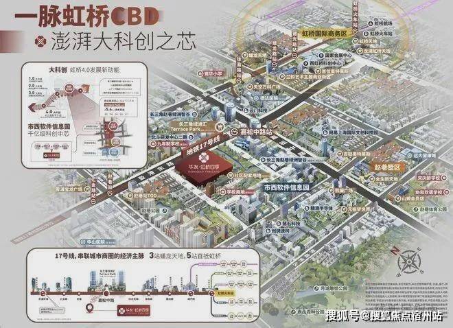 随着大虹桥科创功能西移发展的趋势,青浦新城基于“一城两翼,一带三核”发展战略目标,通过17号地铁线串联起三大核心节点,东起徐泾北斗产业基地,西到金泽华为研发基地,中部核心就是赵巷市西软件信息园,未来这条产业带上预期将会有数十万人口导入。