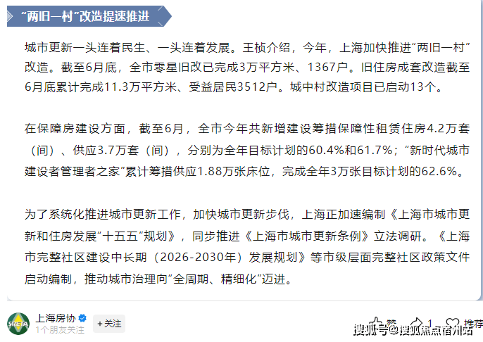 总的来说,上海“两旧一村”改造的加速推进,不仅重塑了城市肌理,更温暖了千家万户的生活。