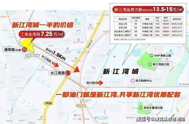 江湾金茂府直线距离新江湾仅约1.5公里,✅✅江湾金茂府售楼处电话:400 - 8824 - 258✅✅一脚油门或一站地铁就可以同频高阶成熟生活配套!