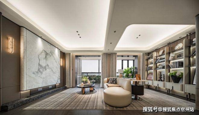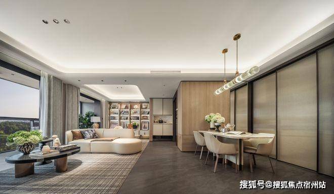 吊顶和墙面采用大量弧线造型取代冰冷的直角,✅✅江湾金茂府售楼处电话:400 - 8824 - 258✅✅不仅以柔和的轮廓减少了磕碰隐患,更给空间注入了优雅与流动的气息