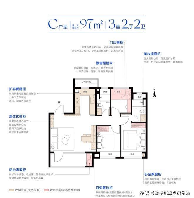 通过系统化的收纳设计,每个空间的储物能力都得到了显著提升。以60L容量的24寸行李箱为参照:97m²C户型整体交付柜体总容量约12m³,相当于足足200个行李箱。这种对空间的高效挖掘与利用,轻松解决了业主的储物难题。