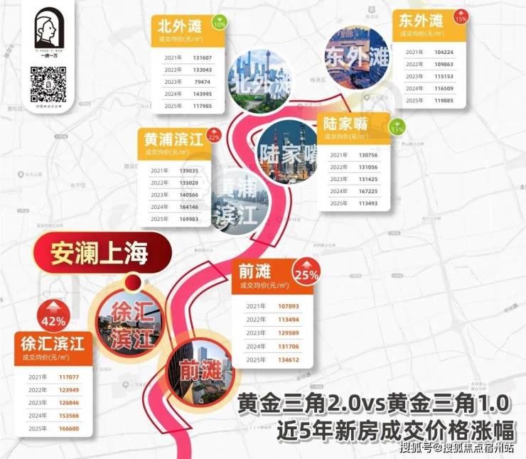 楼市是最真实的晴雨表。近五年,徐汇滨江新房成交价累计涨幅高达42%,在核心滨江段中领跑。(数据来源:一房一万)