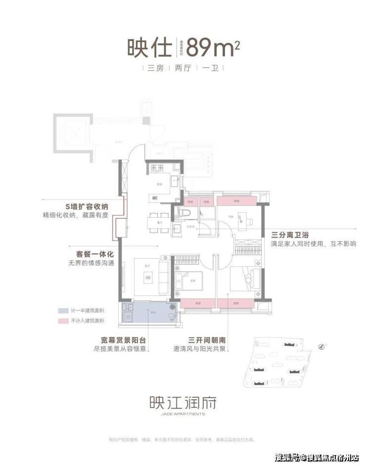 其次是户型设计。在户型产品同质化严重的当下,映江润府花更多心思在户型创新设计,给到置业者更美好的家的体验。建筑面积约89㎡王炸小豪宅户型,拥有四大高光细节和创新设计,在市面上同类产品中非常能打。