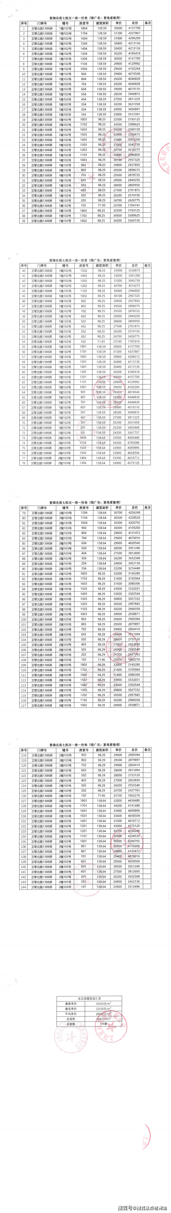 七批次一房一价表