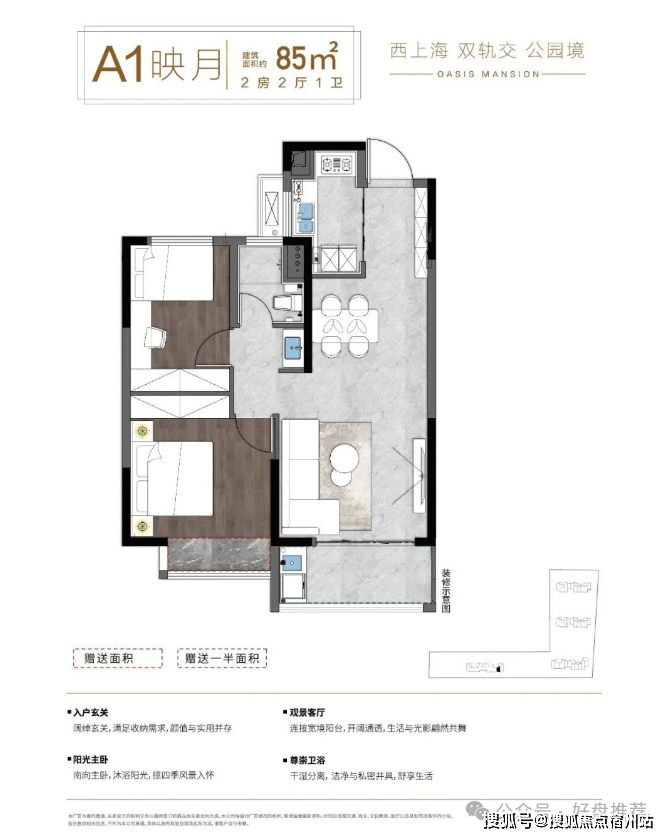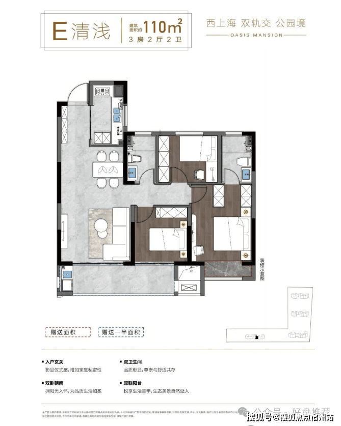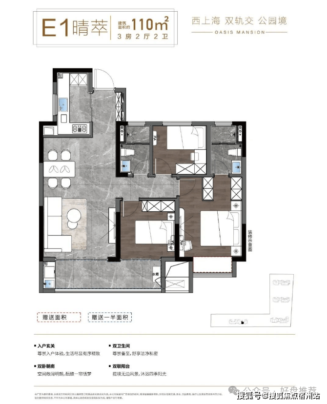 建筑面积约80㎡–110㎡装修美宅,配备新风、中央空调(“中空”建议写为全称),细节打磨品质生活。