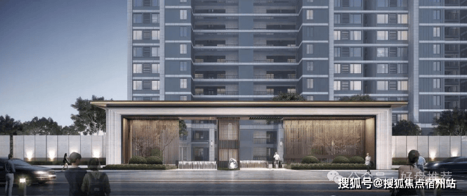 (项目建筑效果图)约6.8米层高恢弘礼仪门头尊贵大气的礼仪门头,结合现代简洁的景观线条,彰显尊贵与归家礼序感,带来品质归家体验。