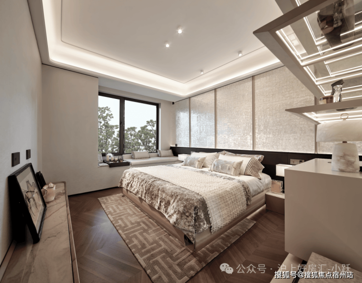 主卧套房270°大转角飘窗, 步入式的衣帽间设计,奢华酒店行政套的设计手法,能带来纯正的居家度假式体验。
